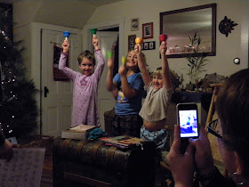 The four parents were given a night out (um...to play Quiddler at the local pub) while the kiddos hung out with Mormor, who taught them all a few songs on the bells, in between making them dinner and putting in a movie, so there was a concert tonight before bed!