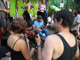 I have to mention here that none of the structure of this course was here - there were no stairs, no benches, no clearings except under the power lines, no rope railing, no outhouse until days before the tournament. The amount of work that went into making this a usable and safe place to be for 3 days of muddy fun was astounding. Of course it looked as though a landscaping team on speed had come through by the time the golfers were done with their, ah, pruning.