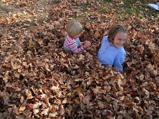 Our attention was turned to the playgroup of toddlers that had been romping around in a nearby part of the park; they were asking if they might borrow our rakes for a bit to make their own leaf piles? As we watched (and then joined in) the making of great piles of leaves, and the ensuing jumping, hiding, rolling and giggling that went on, Eliza turned to me and said, "I think we just made their day a whole lot better!" I don't know that we could ask for more than that.